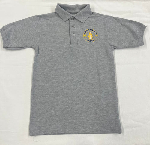MNCS005 Mary of Nazareth Short Sleeve Unisex Pique Knit Polo - Gray - Youth Sizes