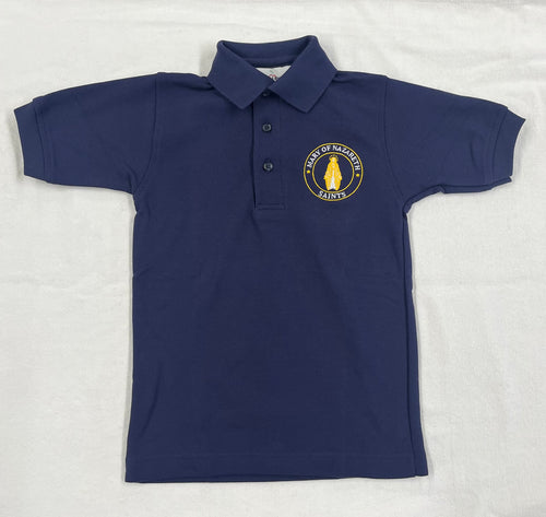MNCS001 - Mary of Nazareth Short Sleeve Unisex Pique Knit Polo - Navy - Youth Sizes