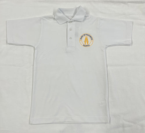 MNCS003 - Mary of Nazareth Short Sleeve Unisex Pique Knit Polo - White - Youth Sizes